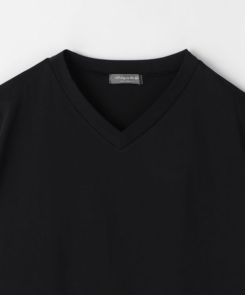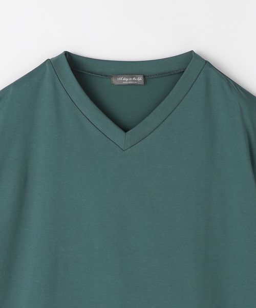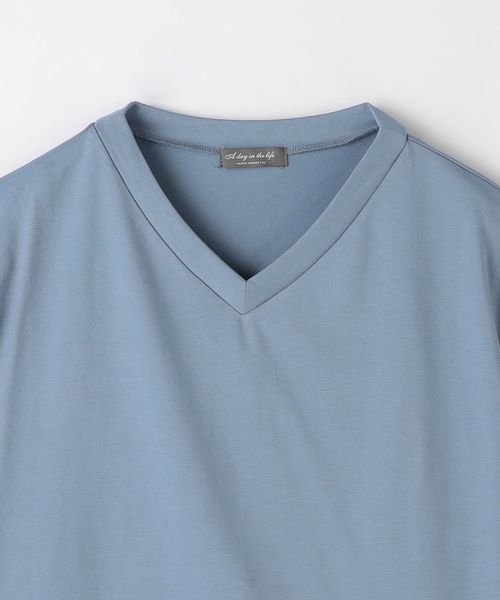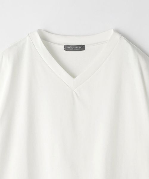 首元をすっきりと見せてくれる、浅めのVネックのカットソー。