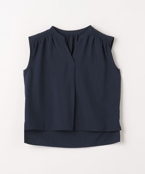 ブラウスはスタンドカラーのスキッパーで、首元に程よい抜けが出ます。