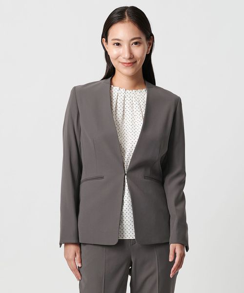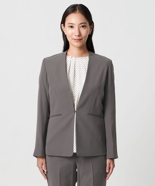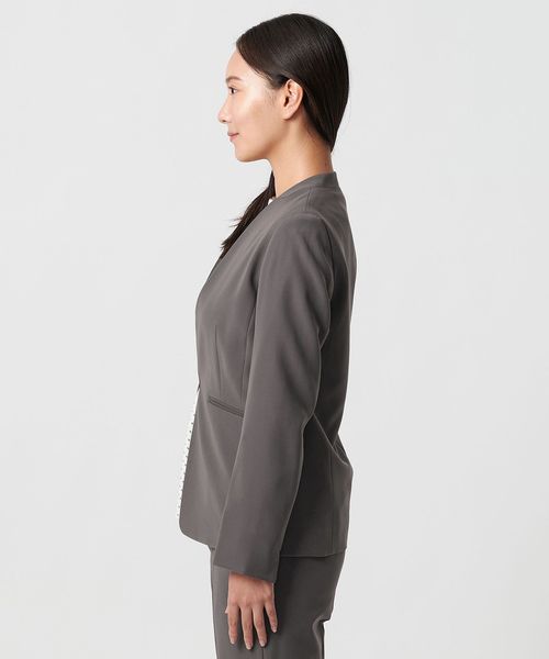 きちんと感のある、シンプルなVネックのカラーレスジャケット。