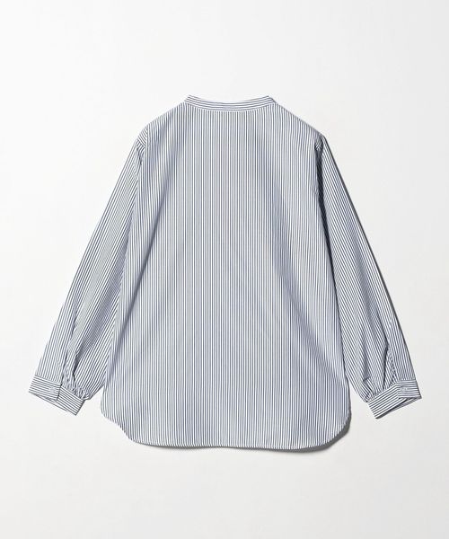 シャツはスタンドカラーのシンプルなつくりで、単品使いもしやすいデザインです。