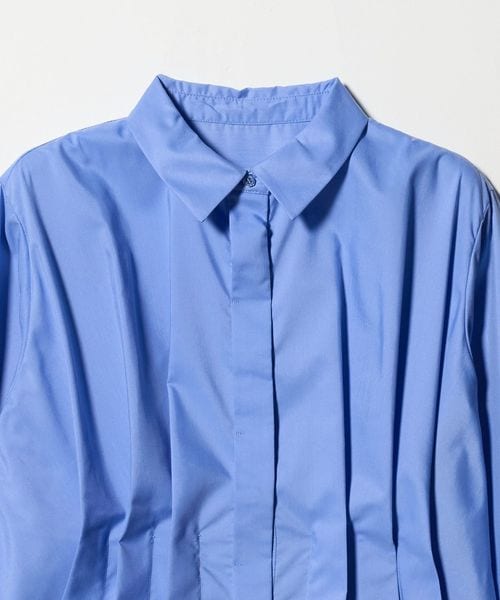 ウエストをシェイプするように大胆に入れたタックがポイント。