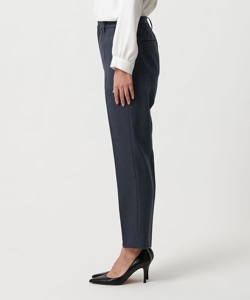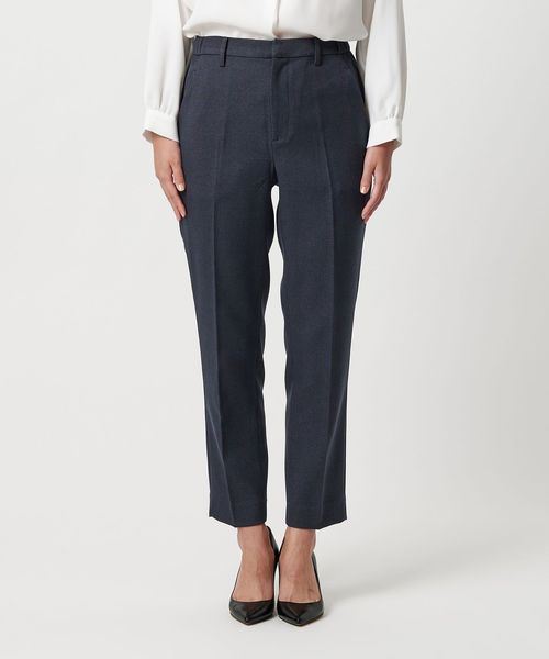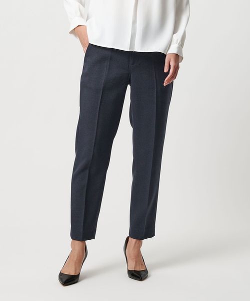 センタープレス入りのテーパードパンツ。