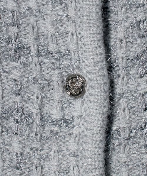 ラメを織り込んだツイードライクなニットにゴールドのボタンが映える華やかなデザイン。