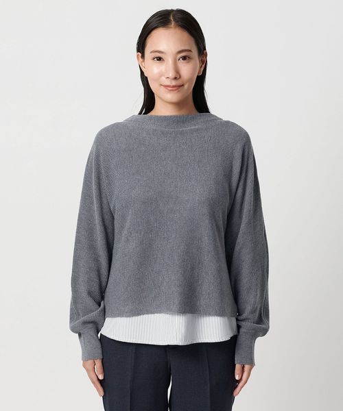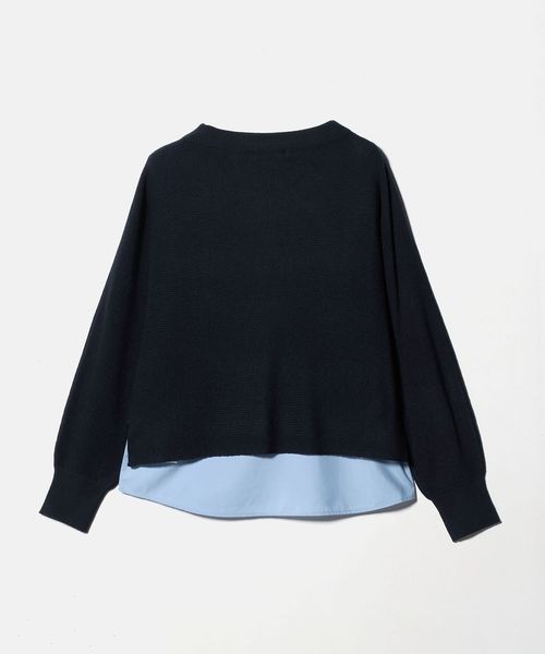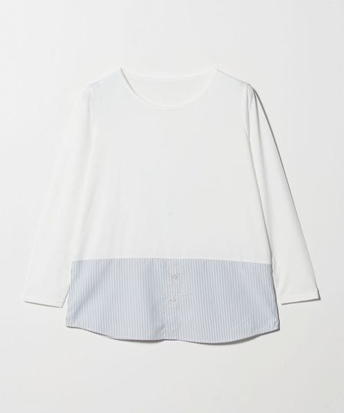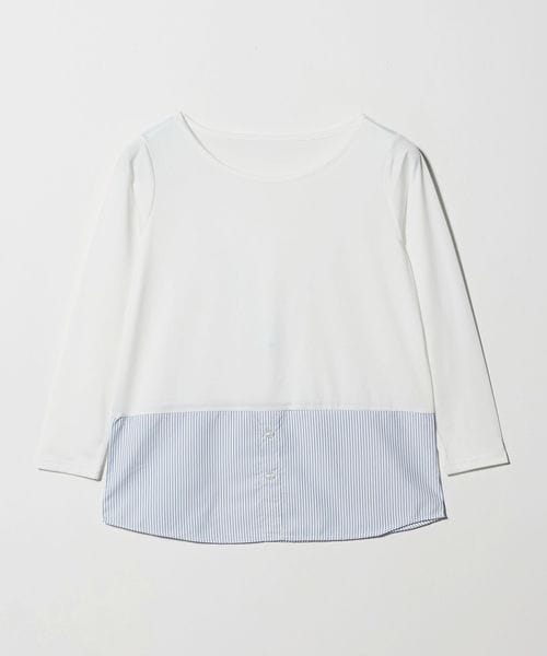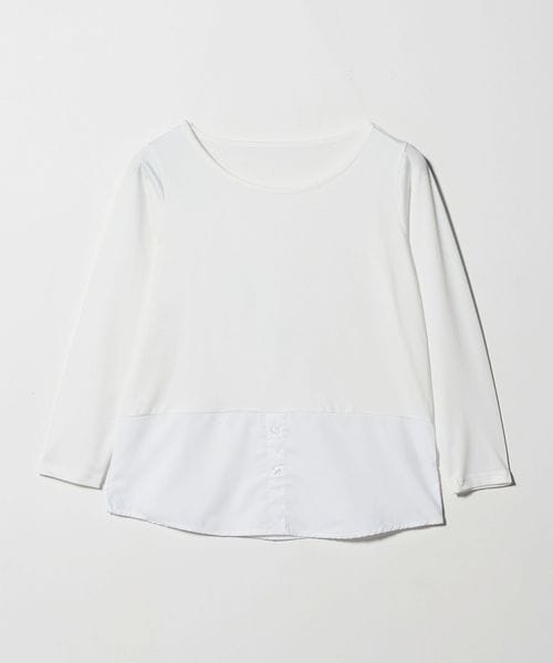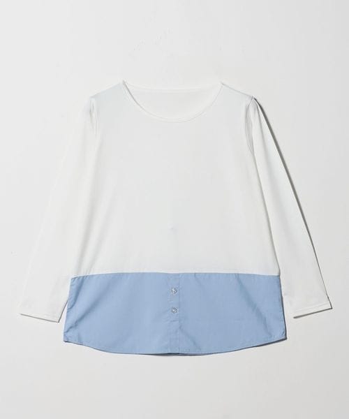 インナーはトップス部分をカットソー、裾をシャツ素材で切り替え、着やすさに配慮したつくりです。