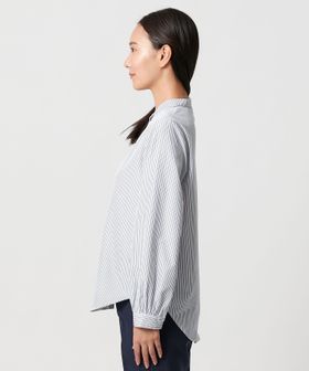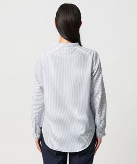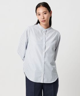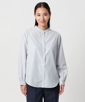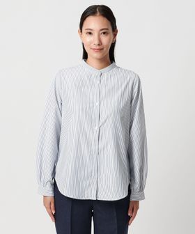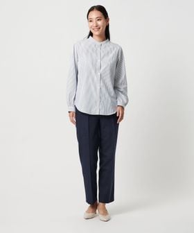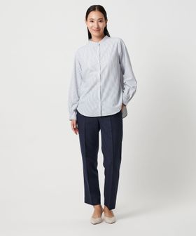 シャツはシンプルなバンドカラーで汎用性の高いデザイン。