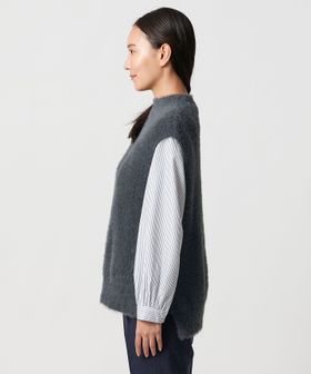 ふわふわフェザーのニットベストとインナーのシャツをセットにしました。