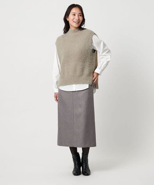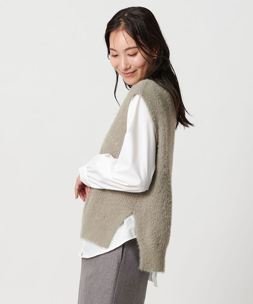 ふわふわフェザーのニットベストとインナーのシャツをセットにしました。