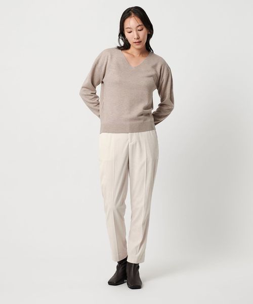 ウエストは持ち出し仕様で、きちんと感と美しいシルエットを両立し、トップスインもすっきり決まります。