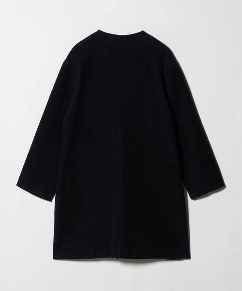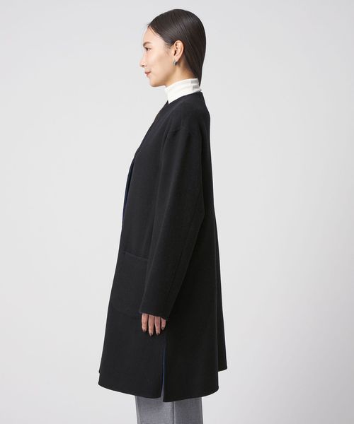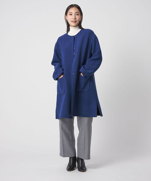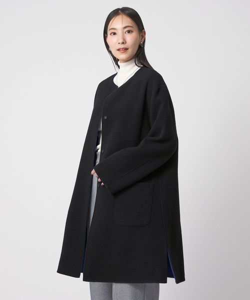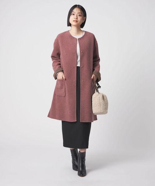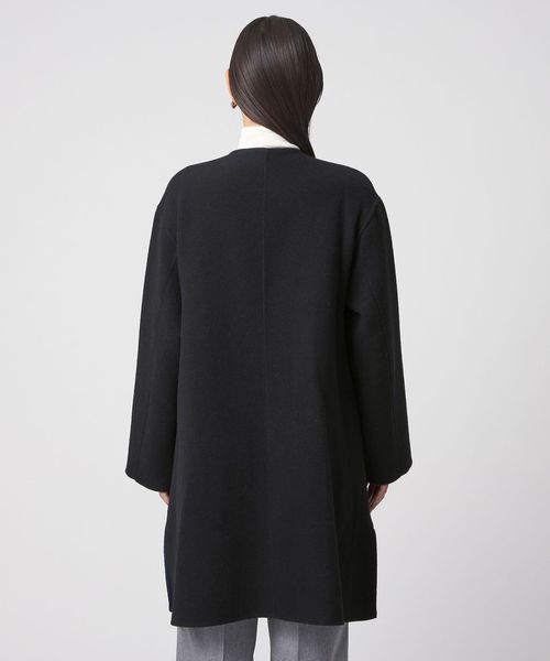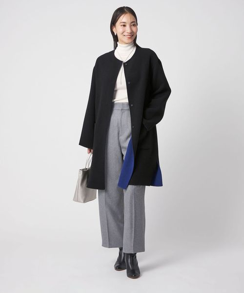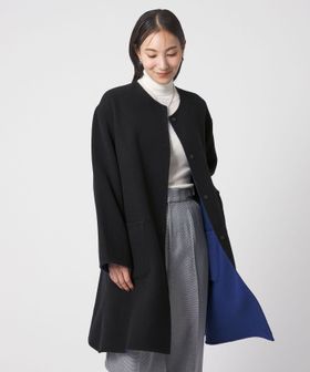 すっきりとしたノーカラーとAラインシルエットが軽やかな印象です。