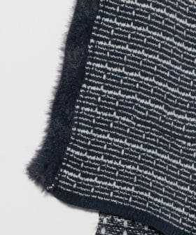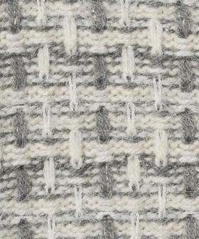 アクリル糸、フェザー糸、ラメ糸をミックスしツイードライクな編地にしました。