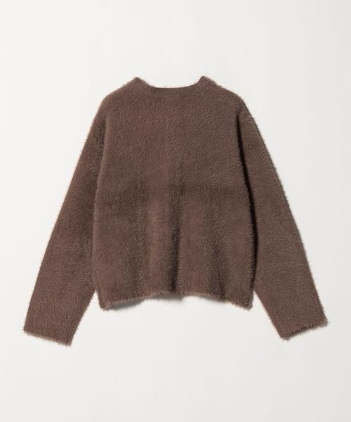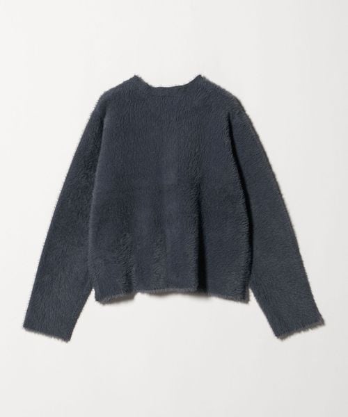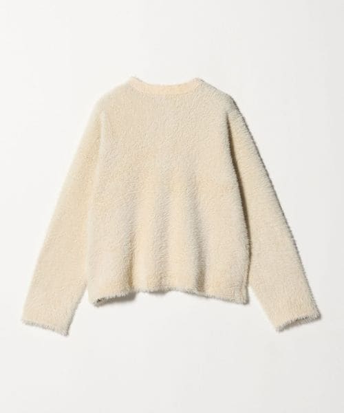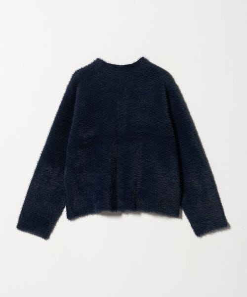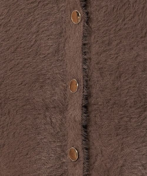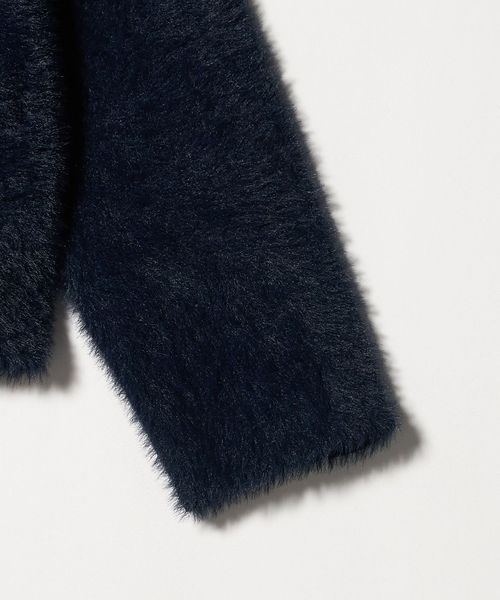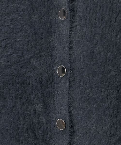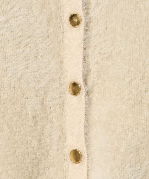 ふわふわのフェザーとメタルボタンがポイントのニットジャケット。