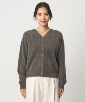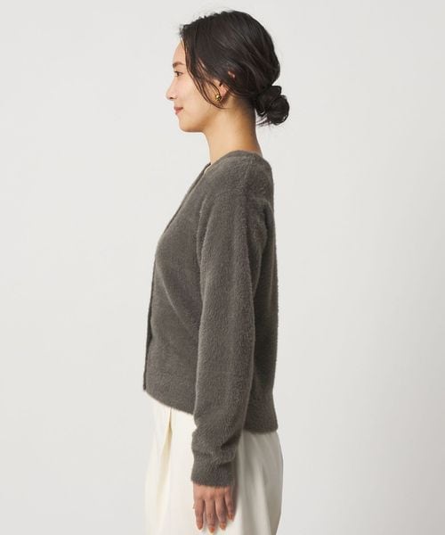 ふんわりとしたフェザーヤーンが優しげなきれいめカーディガン。