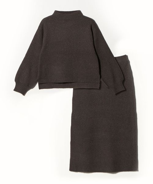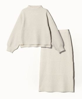 ハイネックのニットプルオーバーとタイトスカートのセットアイテム。