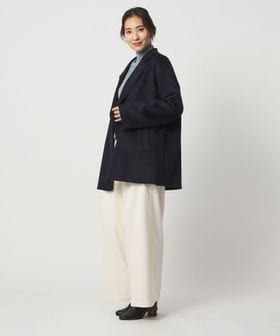 襟をやや大きめに仕上げたダブルブレストの重厚感とゆとりあるシルエットが今っぽい抜け感をつくります。