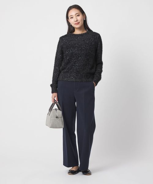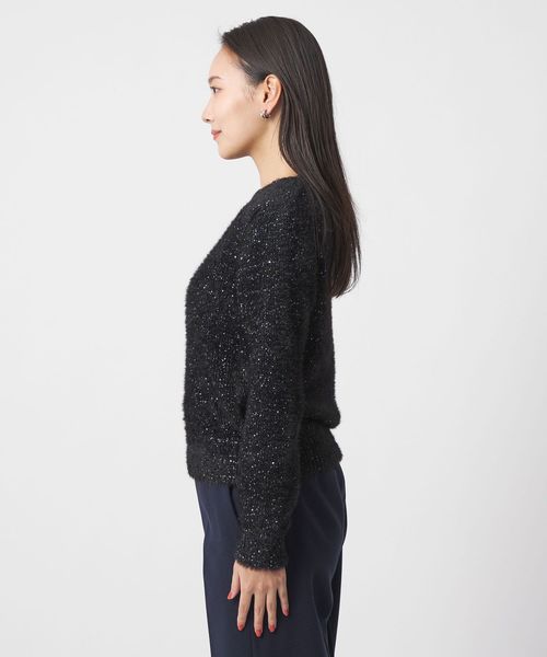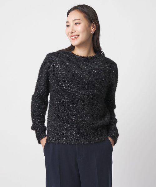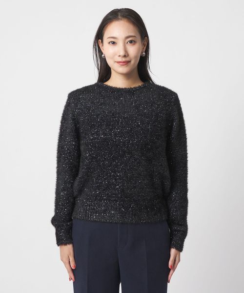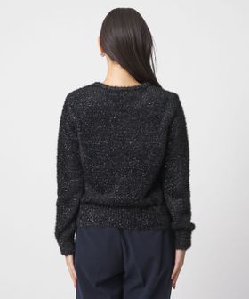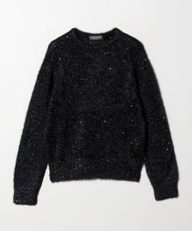 ふんわりとしたフェザーにスパンコールがきらめく、華やさと上品さを兼ね備えたニット。