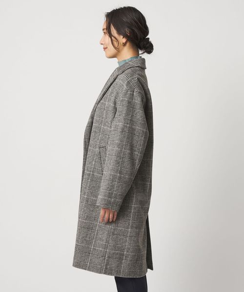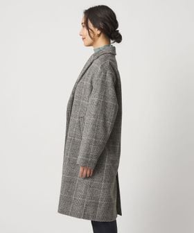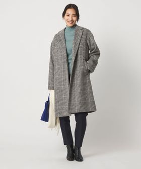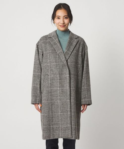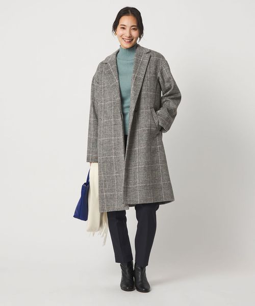ゆったりとしたドロップショルダーのチェスターコート。