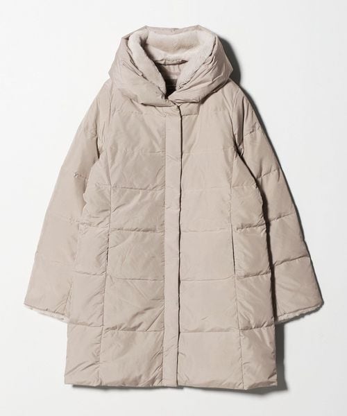 裾に向かって広がる横段が、ダウン特有のボリュームを抑えつつ美しいラインを演出。