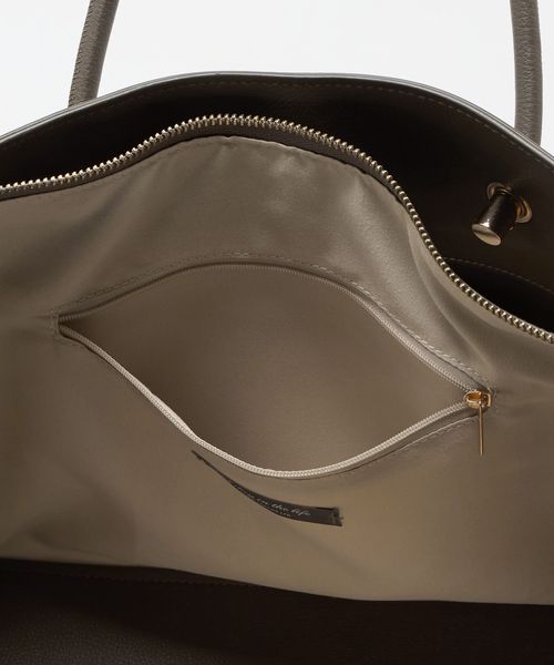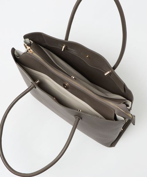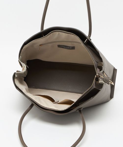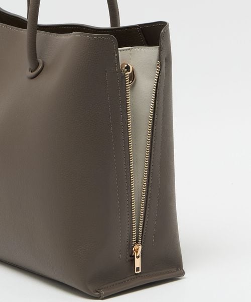 両脇のファスナーとバイカラーがアクセントのトートバッグ。