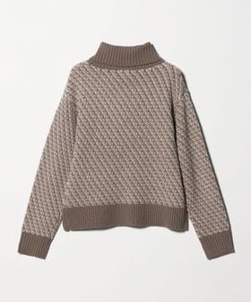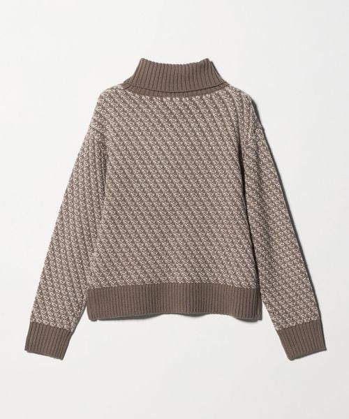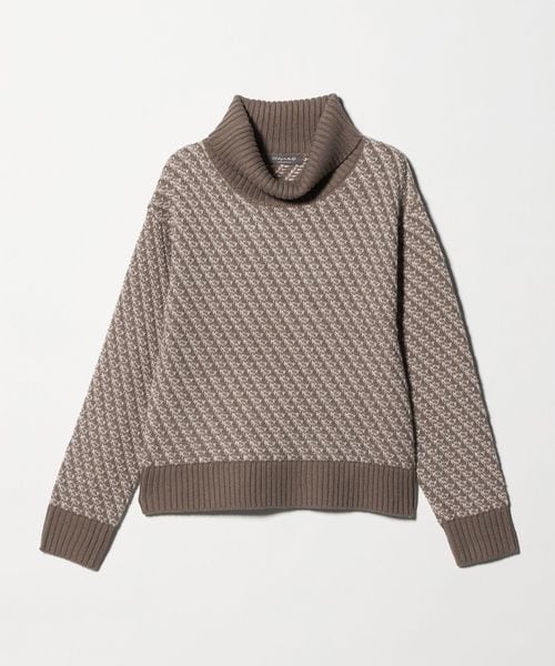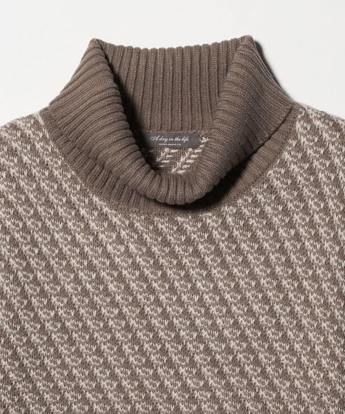 ラメ バイアスジャガード オフタートルニット モカ <A DAY IN THE LIFE>