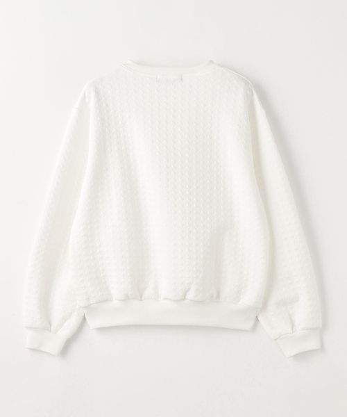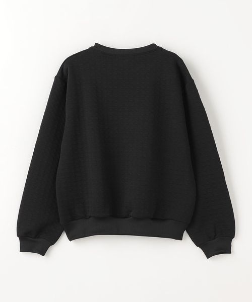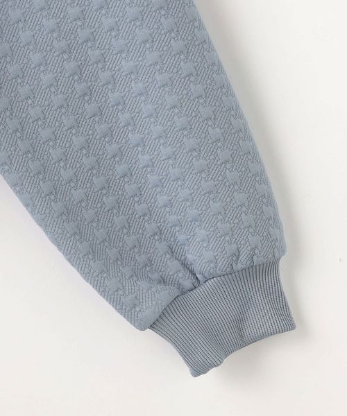 凹凸でハウンドトゥース柄を表現したジャガード素材をシンプルなスウェット型に落とし込みました。