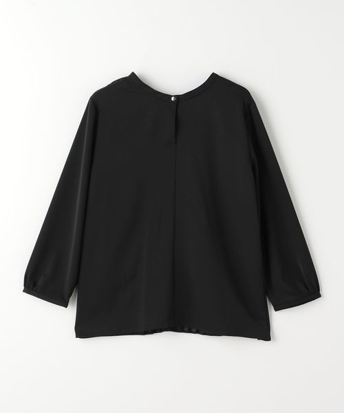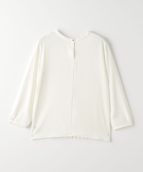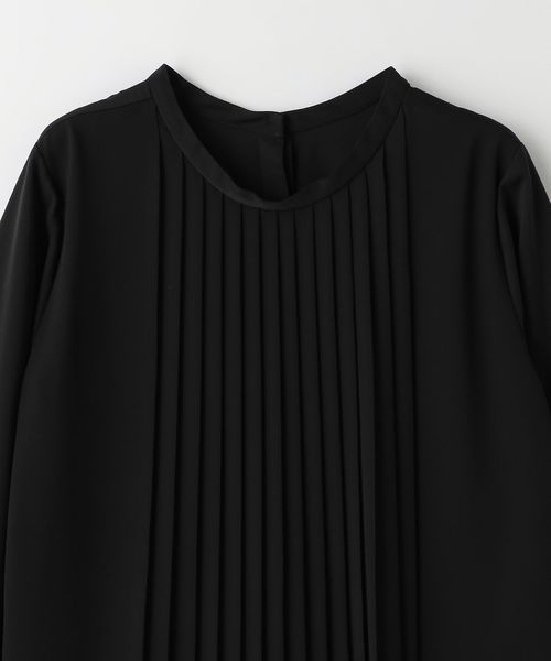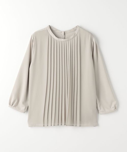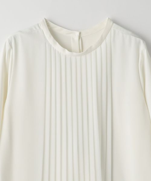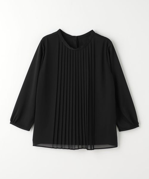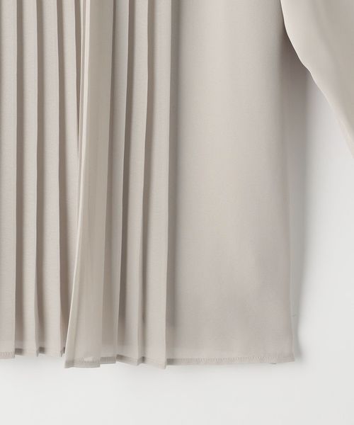 プリーツ加工を施したシフォンを前身頃に重ねたブラウス。