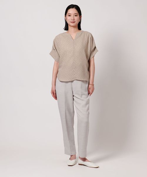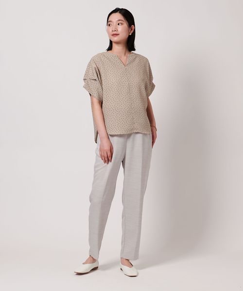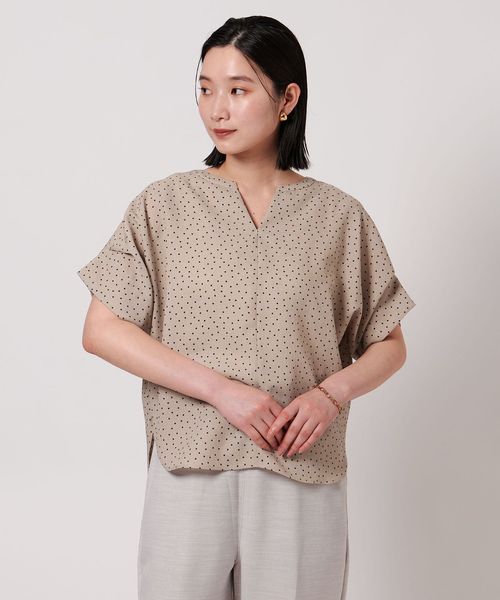 リネンライク プリント キーネック ドルマンブラウス <A DAY IN THE LIFE>