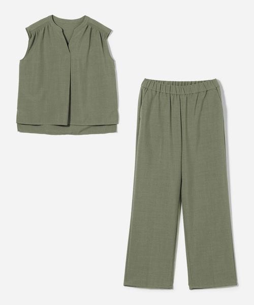 ノースリーブのブラウスとワイドパンツのセットアイテム。