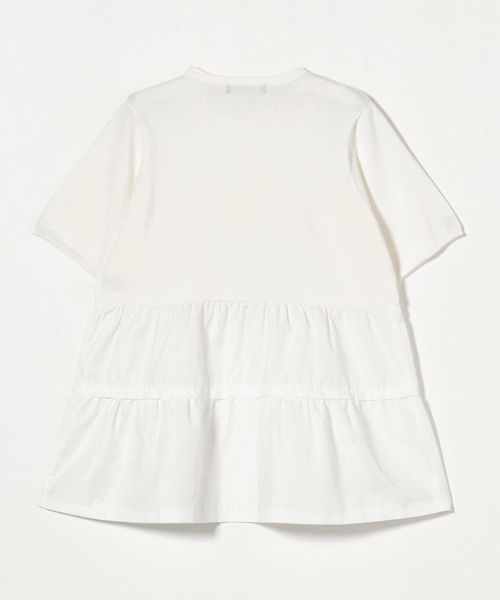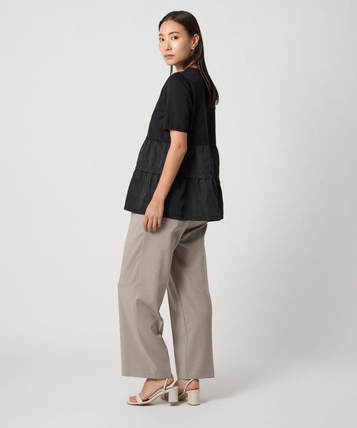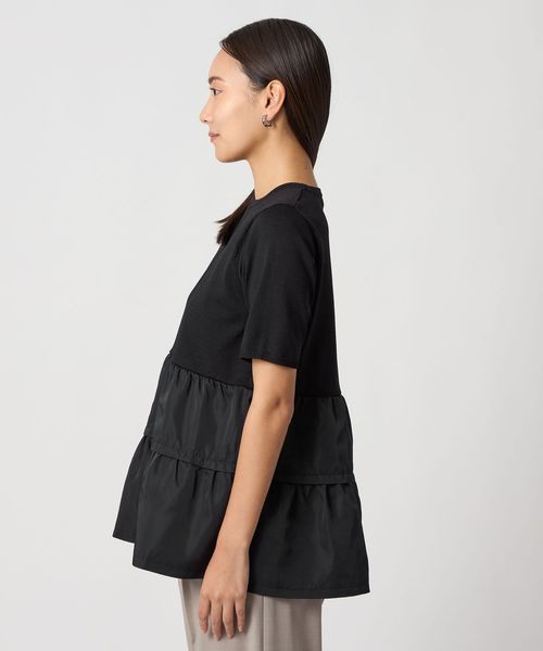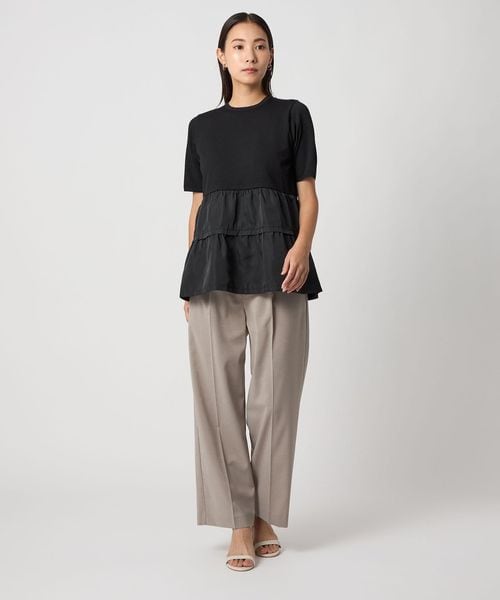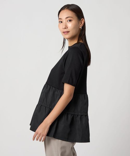 トップス部分はすっきりとした表面感のレーヨンナイロン糸、ペプラム部分はハリのあるポリエステルを使用しています。