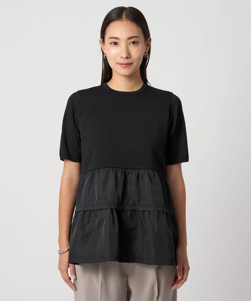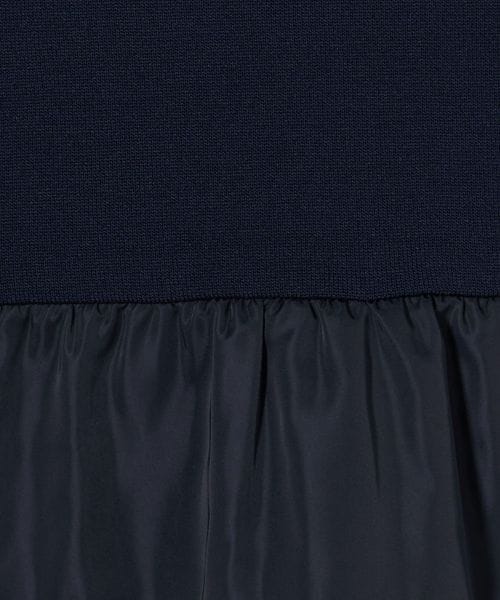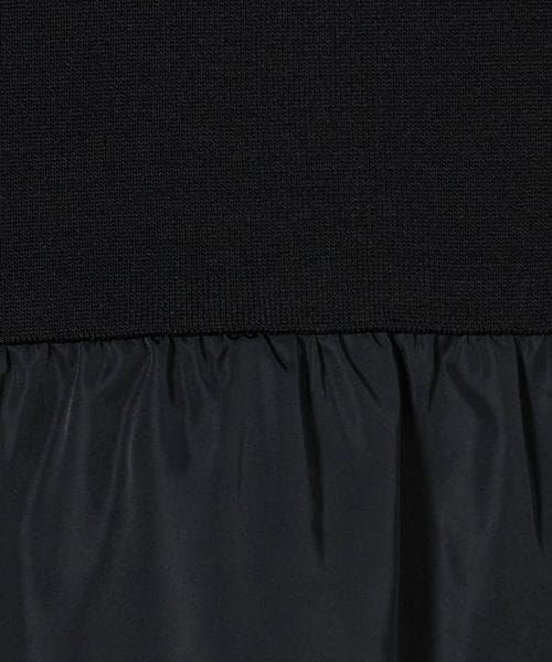 トップス部分はニット、ペプラム切り替えはハリのあるポリエステルで立体感あるシルエットに仕上げました。