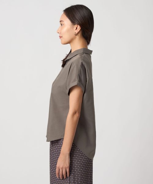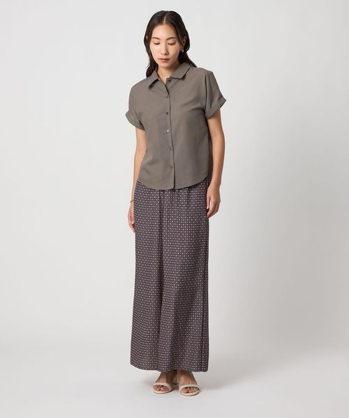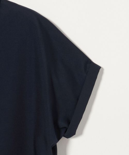 パンツともスカートとも合わせやすく、タックインすればメリハリのついた着こなしに。