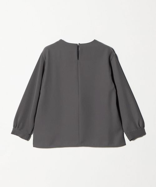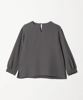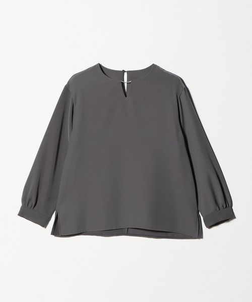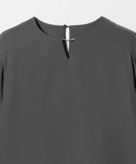 キーネックにメタルパーツをあしらったきれいめブラウス。