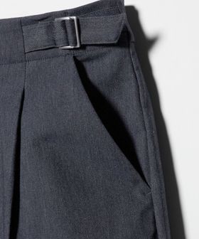フロントタックを入れ腰回りにゆとりを持たせ、心地よくはいていただけるよう仕上げました。