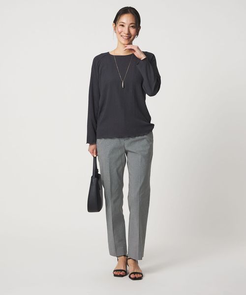 すっきりとしたストレートシルエットに、センタープレスがきちんと感をプラス。
