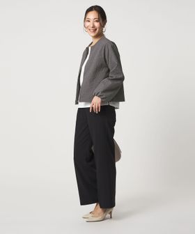 フェミニンな雰囲気なので、ワイドパンツやスラックなどのシャープなボトムス合わせもおすすめです。