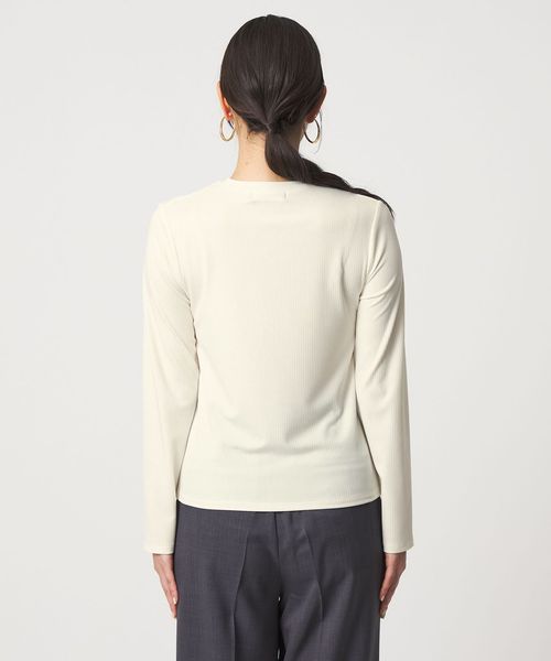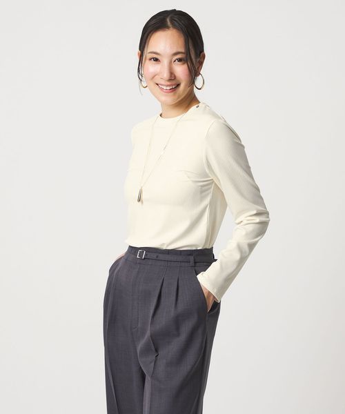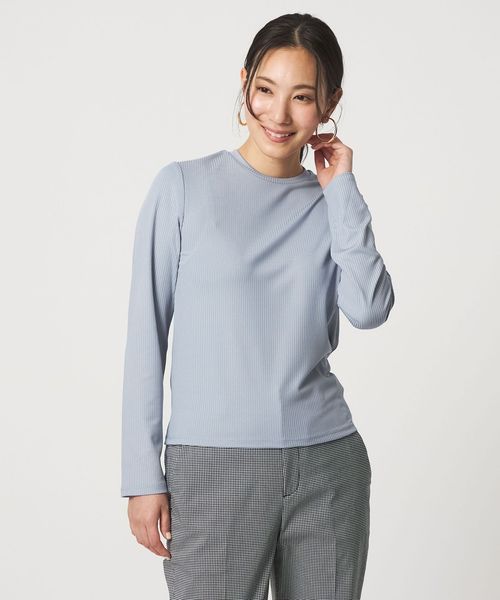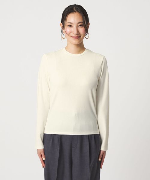 きちんと見えするクルーネックのリブカットソー。