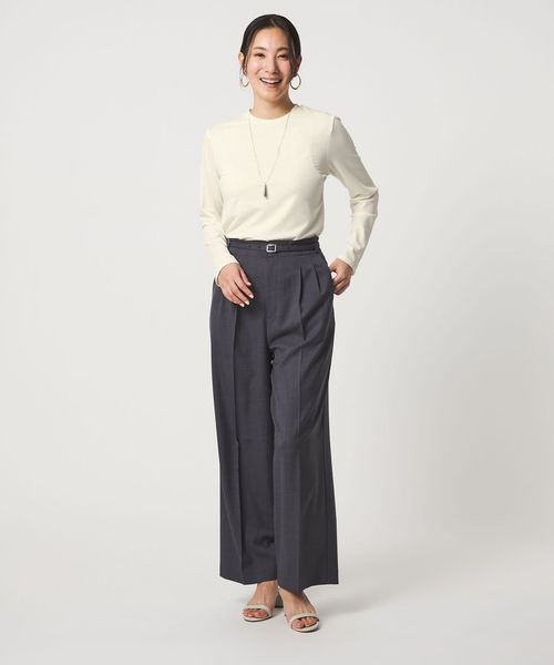 かっちりとしたスーツのインナーはもちろん、休日はフレアスカートやデニムと合わせるなど着回し力の高いアイテムです。