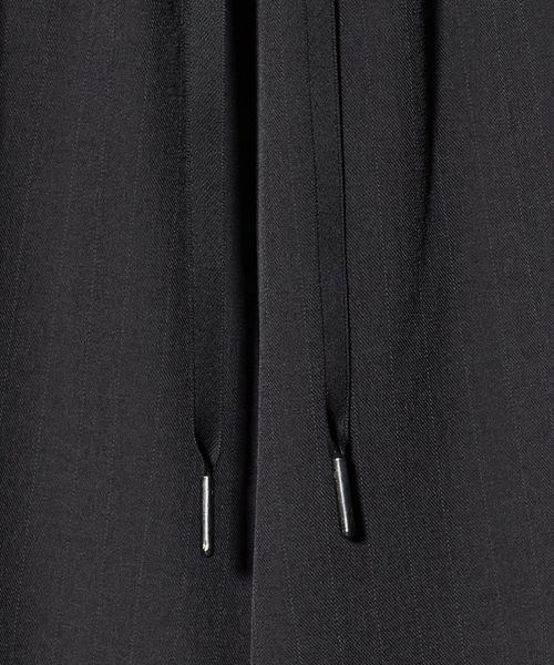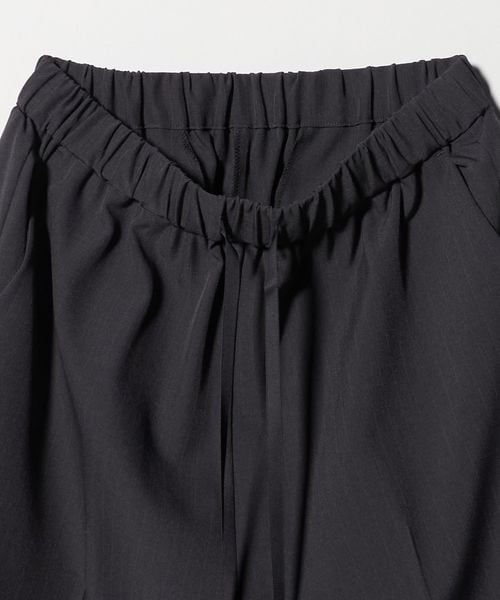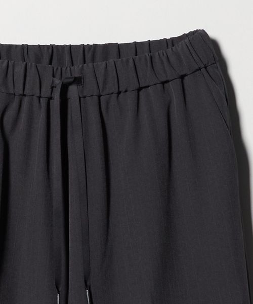 リラックス感のあるワイドシルエットながら、ピンストライプ柄がシャープな印象をつくるきれいめイージーパンツ。