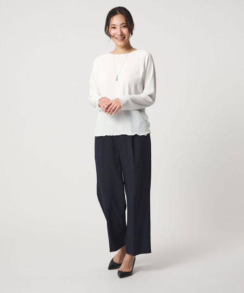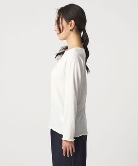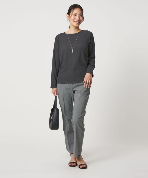 ジレやジャンパースカートなどのインナー使いはもちろん、ワイドパンツやティアードスカートなどのボリュームあるボトムスとも好相性。
