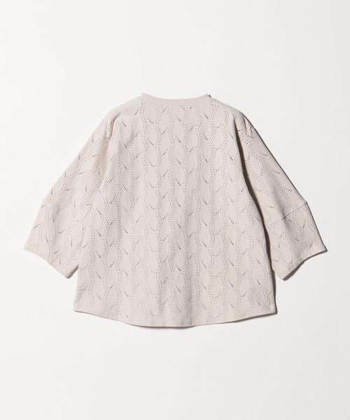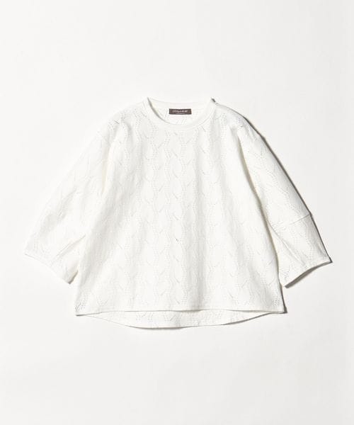 立体感のあるランタンスリーブと、レースのような表面感が目を惹くカットソー。