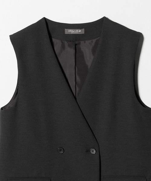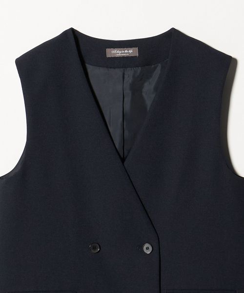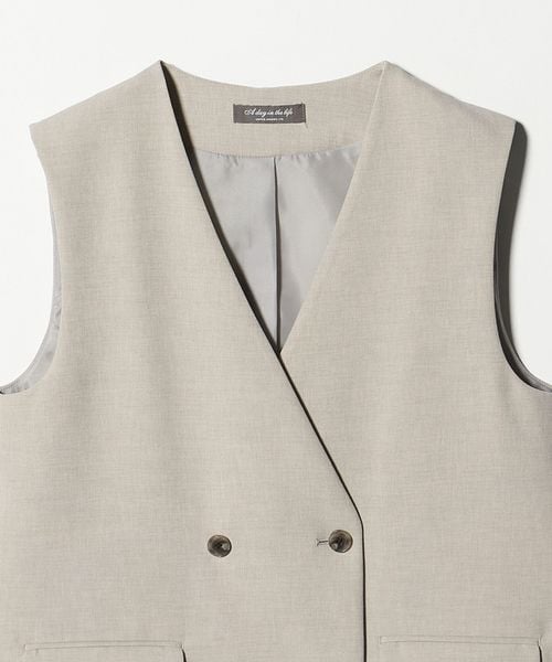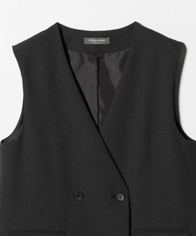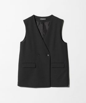 ノーカラーのダブルブレストのジレ。