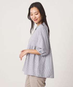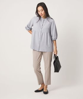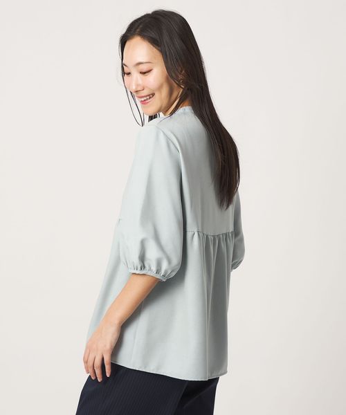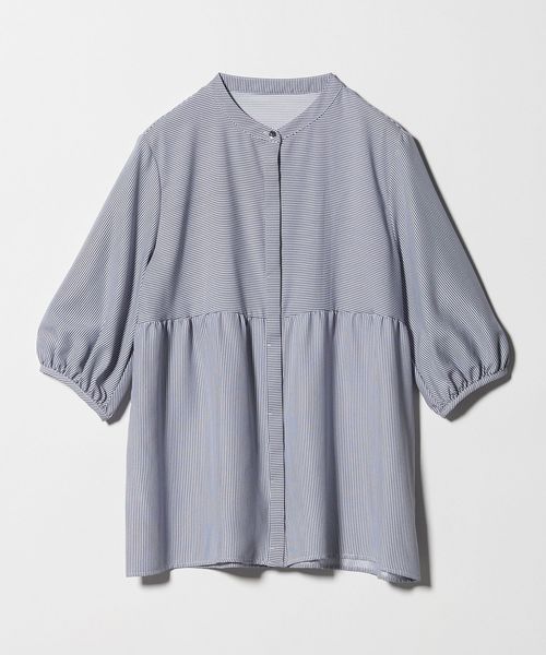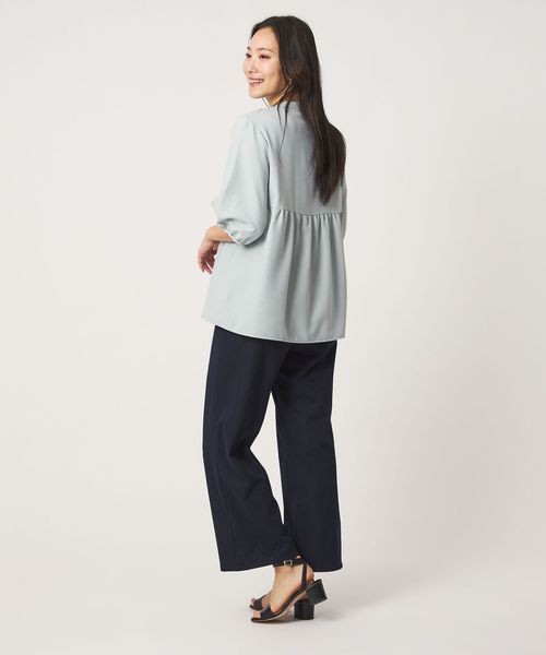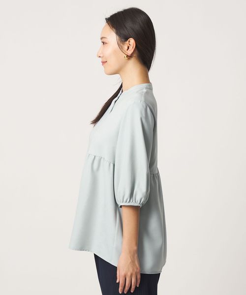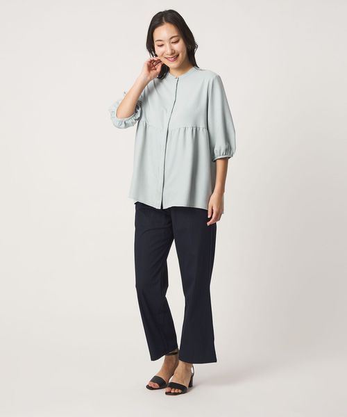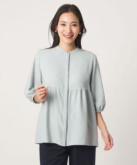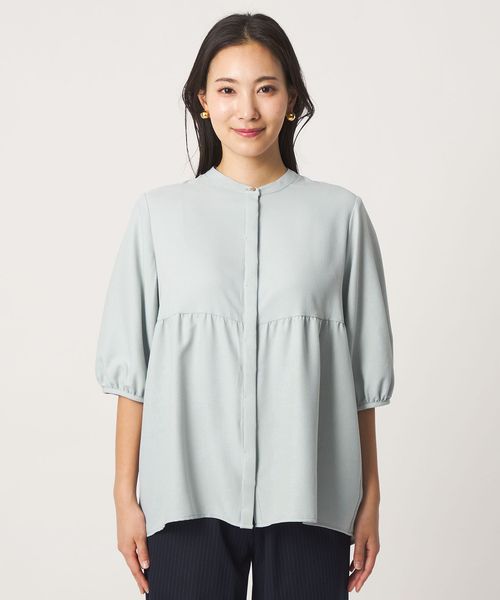 ペプラム バンドカラーブラウス 6分袖 <A DAY IN THE LIFE>