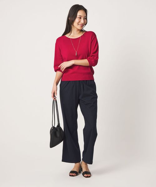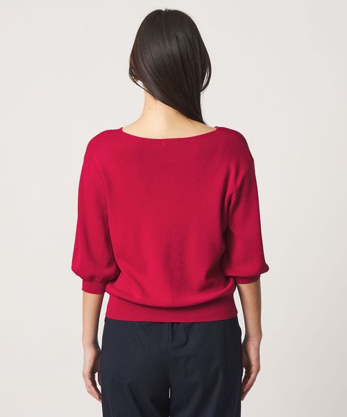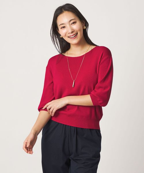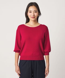 きちんと感のある、シンプルなハーフスリーブニット。