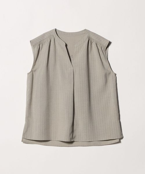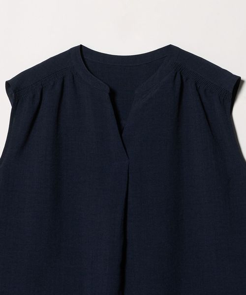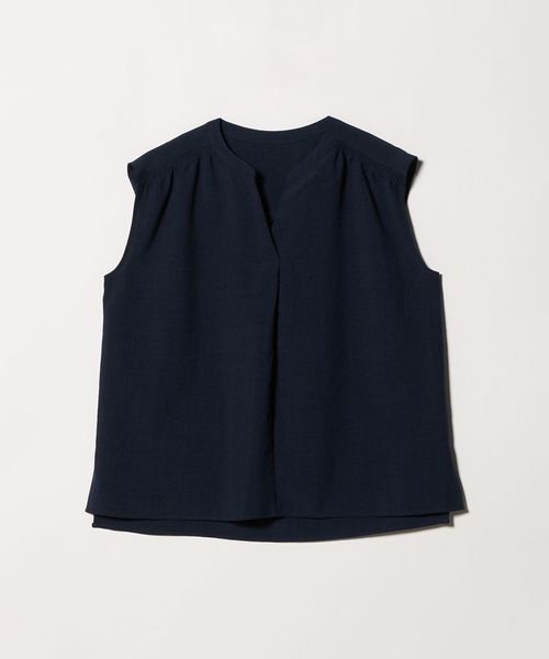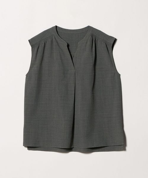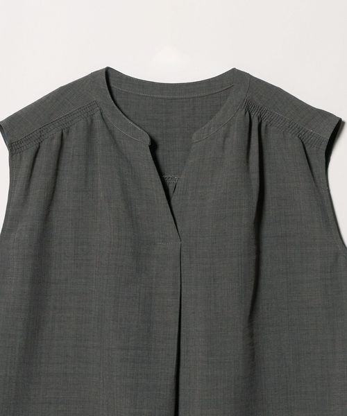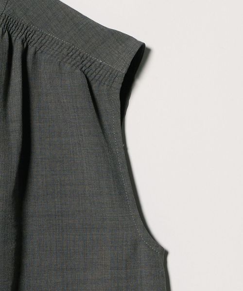 肩が出すぎないノースリーブは羽織りなしでも着やすく、ギャザーやフロントタックを施すことで、立体感のある美しいシルエットに仕立てました。