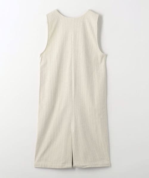 すっきりとしたIラインシルエットと、深めのキーネックがポイントのジャンパースカート。