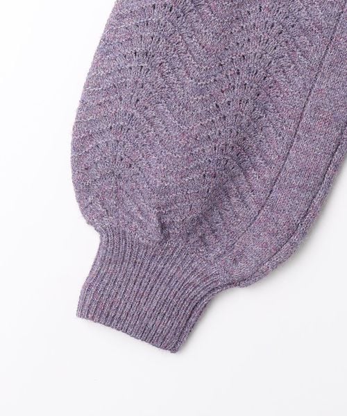 袖をクロシェ編みで切り替えたプルオーバーニット。
