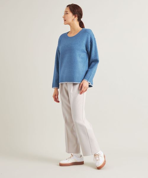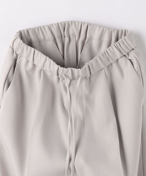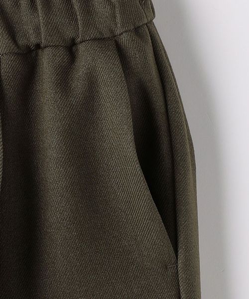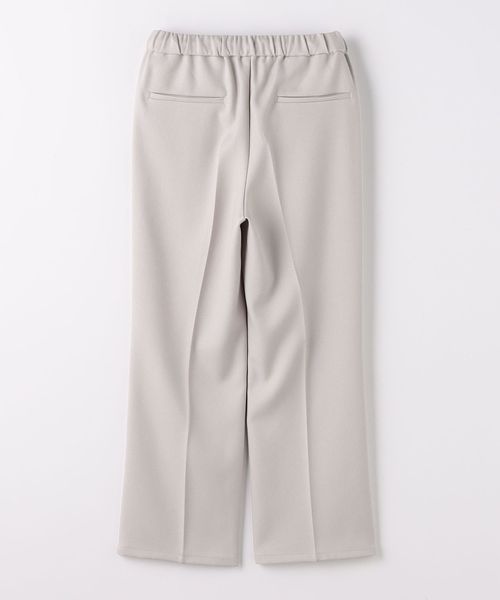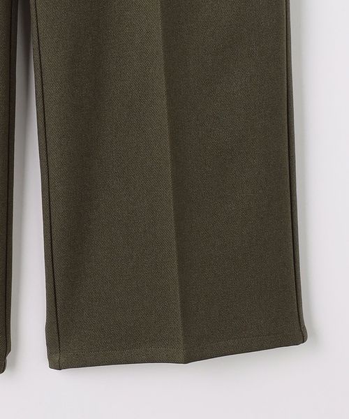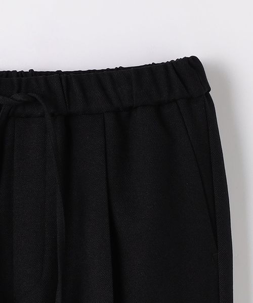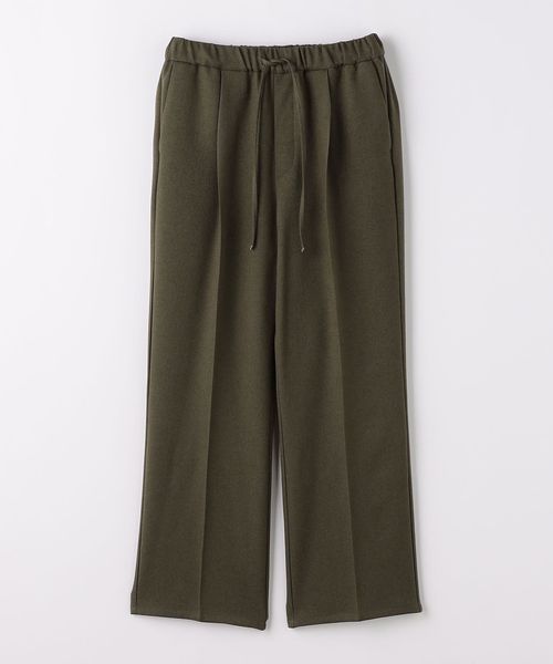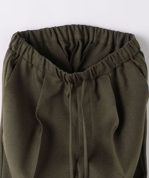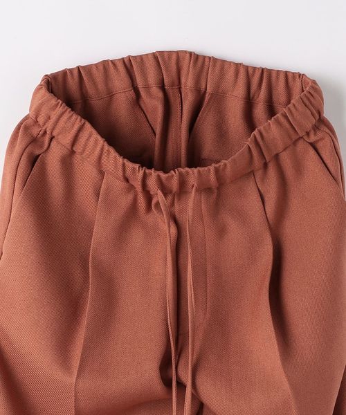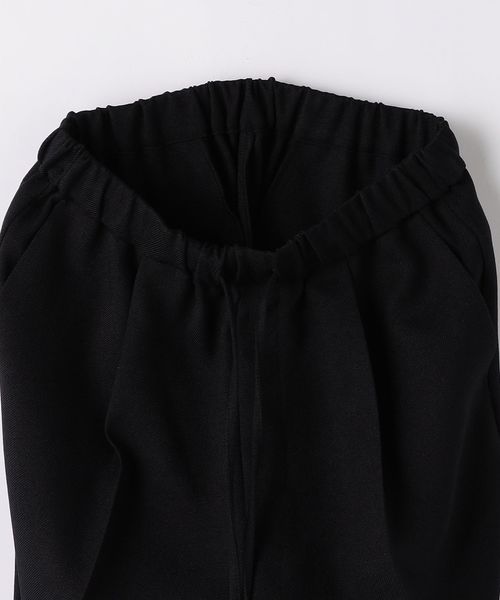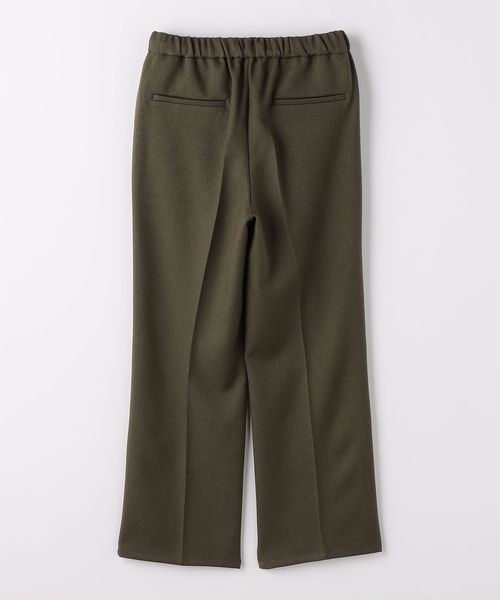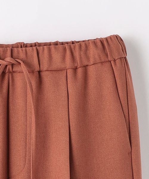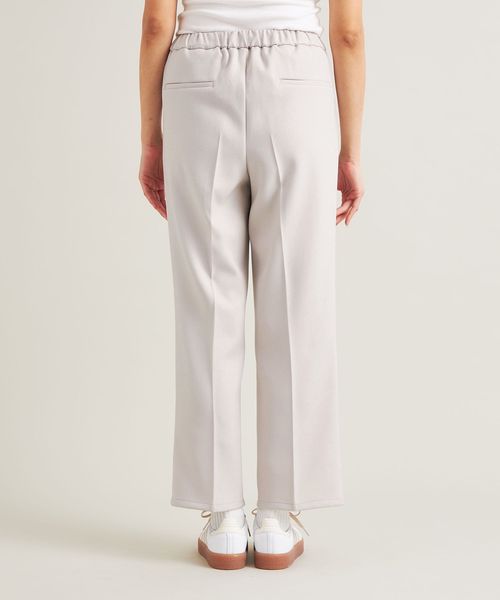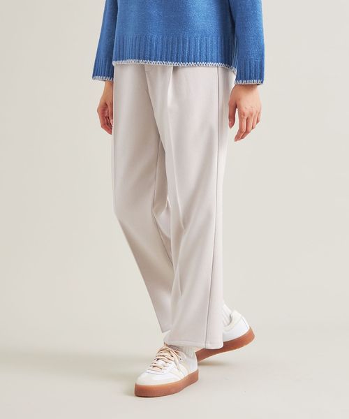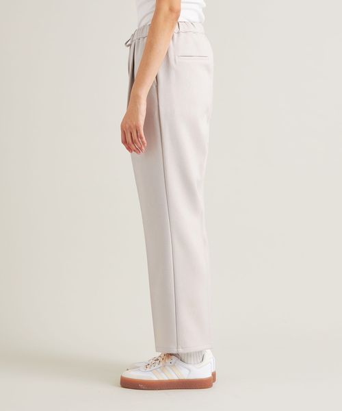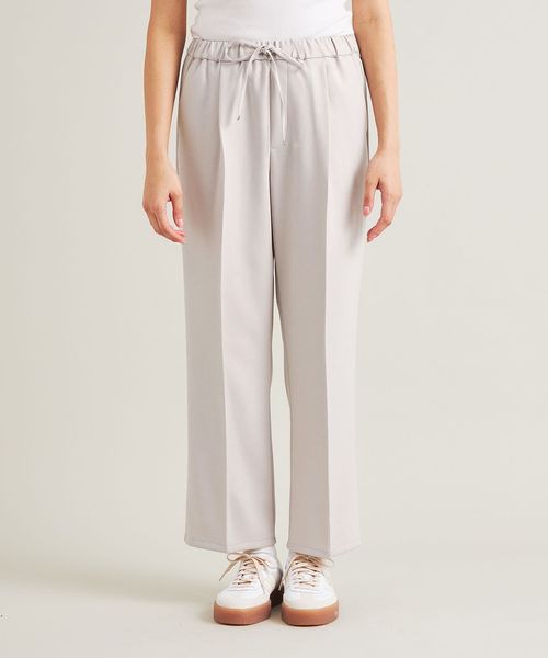プレスライン入りできちんとした印象もありつつ、ウエストはぐるりとゴム仕様で楽なはき心地の万能パンツです。
