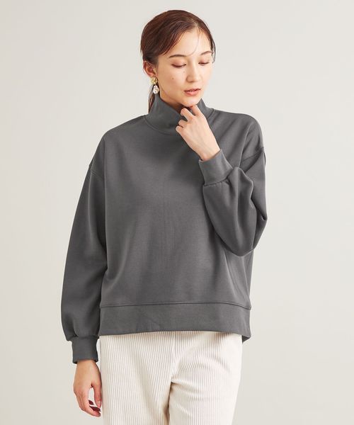 裏起毛のダンボールニットを使用したハイネックプルオーバー。