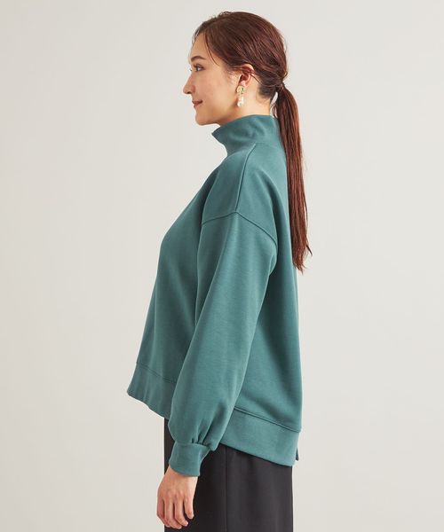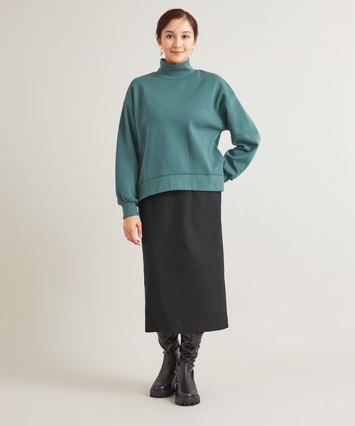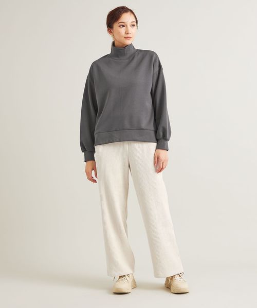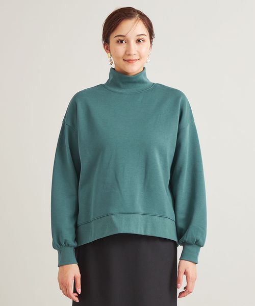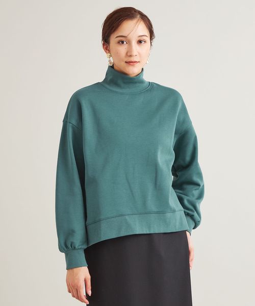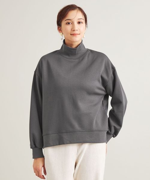 裏起毛のダンボールニットを使用したハイネックプルオーバー。