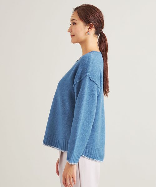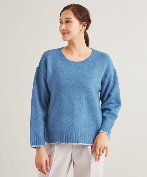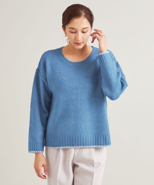 ステッチディティールがさりげないアクセントになり、ベーシックながら着映えするニットです。