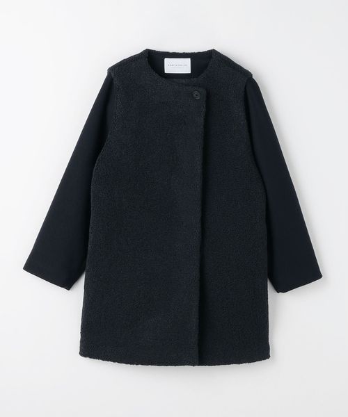 身頃をボア、袖はニットメルトン生地を使用した異素材コンビコート。